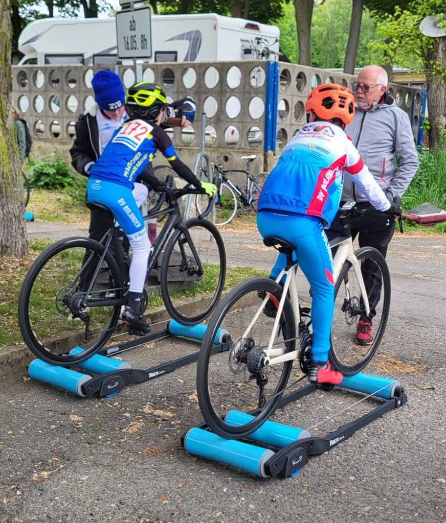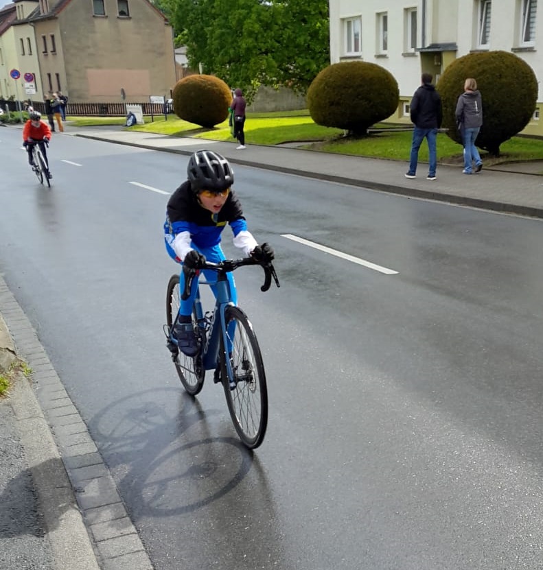 Bereits am Freitagmorgen ging es früh los: Um 5:30 Uhr startete die Anreise nach Gera, wo das Team gegen 13 Uhr eintraf und das Fahrerlager auf dem Parkplatz bezog. Am Nachmittag stand das erste Rennen auf dem Programm. Felix und Luca mussten in der Altersklasse U 11 vier Runden à 800 Meter absolvieren. Das hohe Tempo der Favoriten gleich zu Beginn war beeindruckend, doch beide Bolandener konnten sich in der Verfolgergruppe behaupten. Im Zielsprint sicherte sich Felix den 26. Platz, Luca kam als 36. ins Ziel. Trainer Hermann Schäffer zeigte sich hochzufrieden mit dem Auftakt.