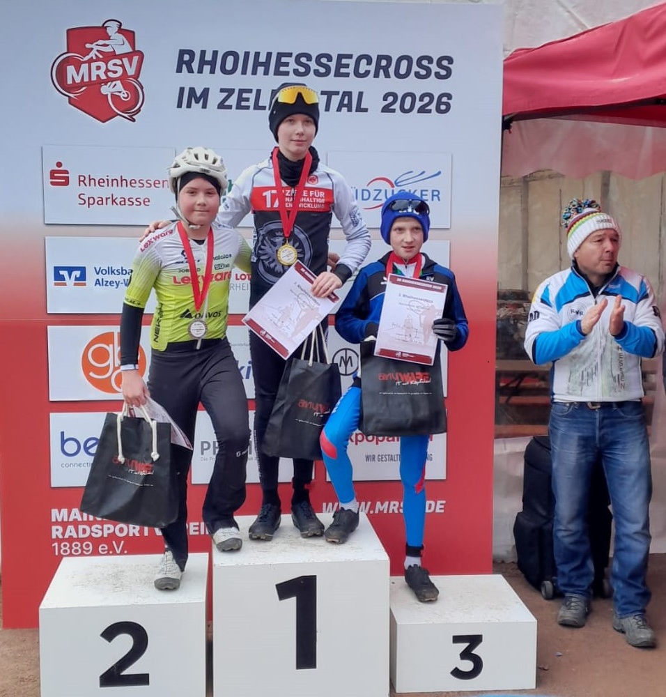 Direkt am darauffolgenden Sonntag stand für den RV Bolanden der Rheinhessen Cross 2026 in Wachenheim/Zellertal auf dem Programm. Verletzungsbedingt konnten zwar nur drei Fahrer an den Start gehen, diese zeigten sich jedoch auch nach der Belastung am Vortag in einer sehr guten Form.